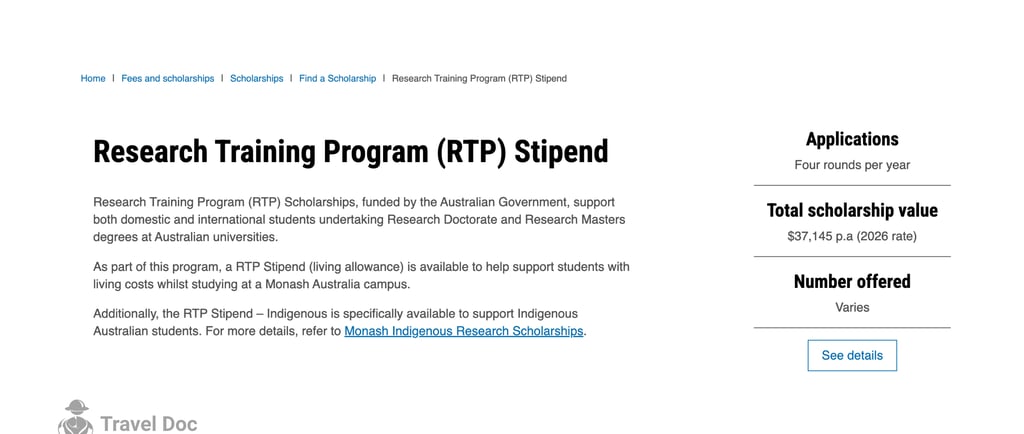 Monash Research Training Program Scholarship 2026 in Australia (Fully Funded RTP Scholarship Guide)