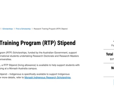 The Monash RTP Scholarship is one of the best fully funded research scholarships in Australia because it offers: